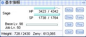 はてさて、RO日記で何度か登場した僕のセージさんですが、